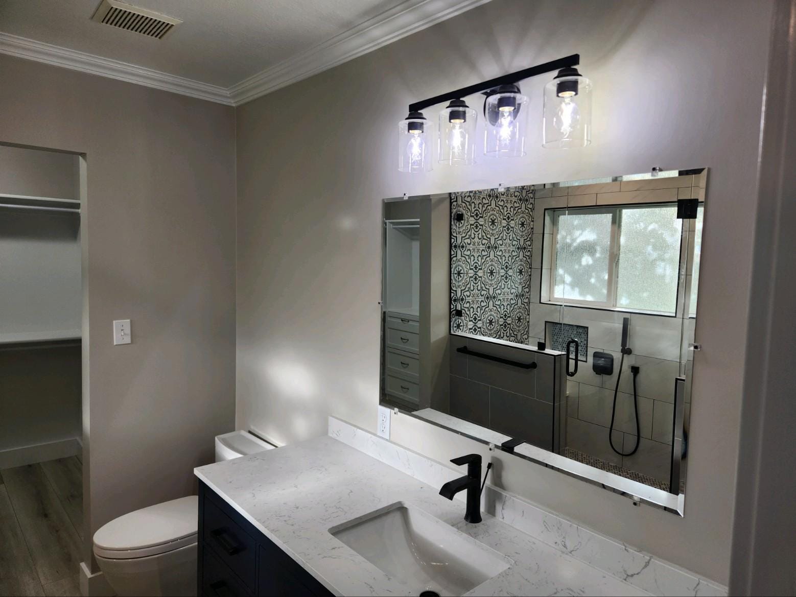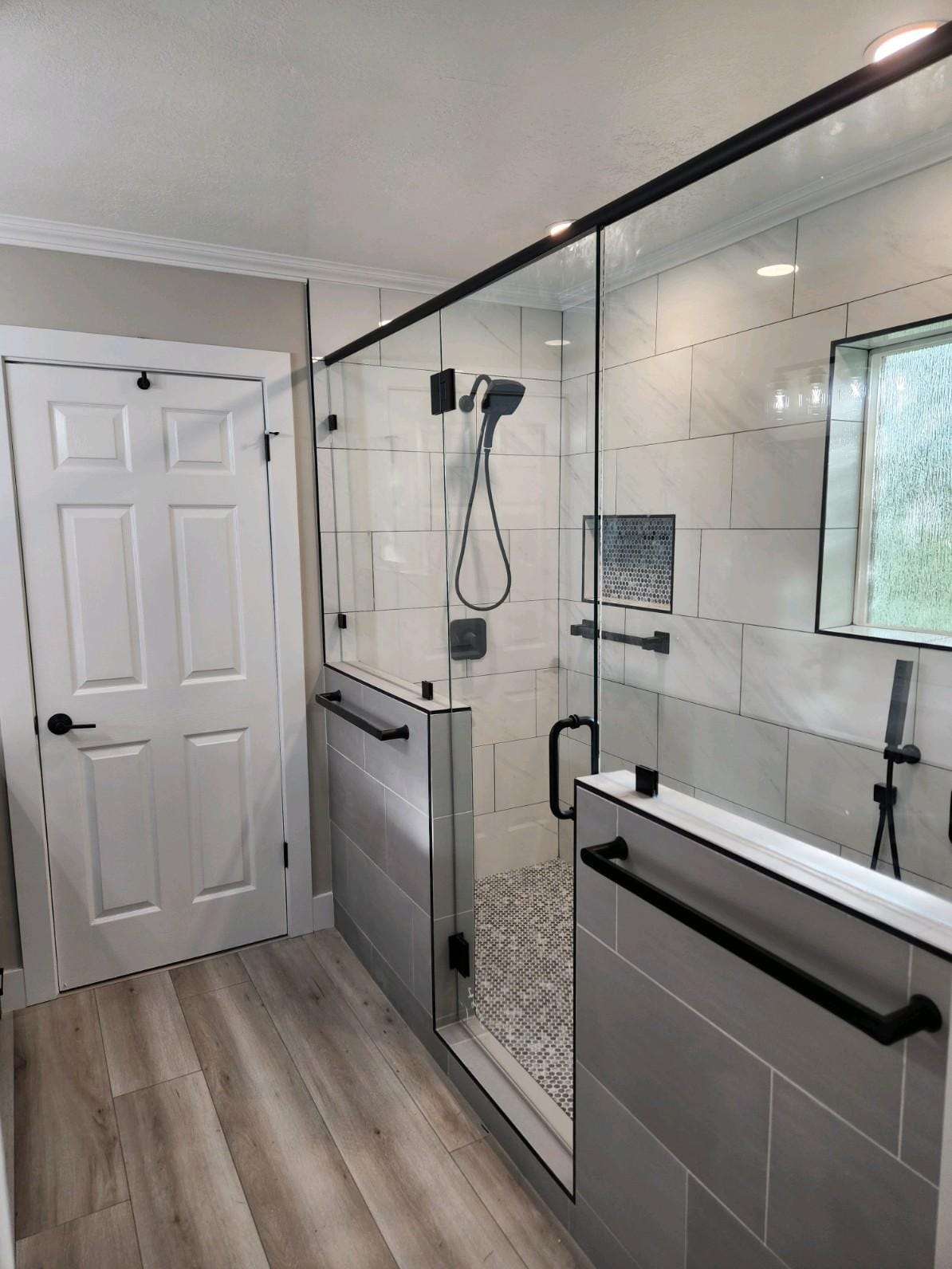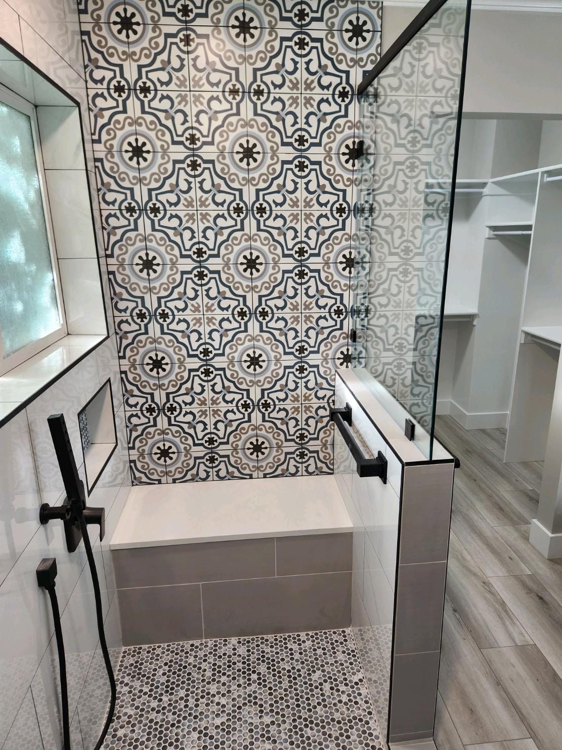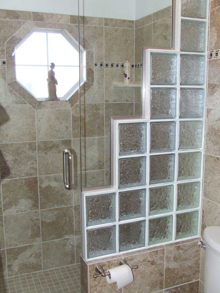 Fancy Shower with Glass Blocks and Frameless Door